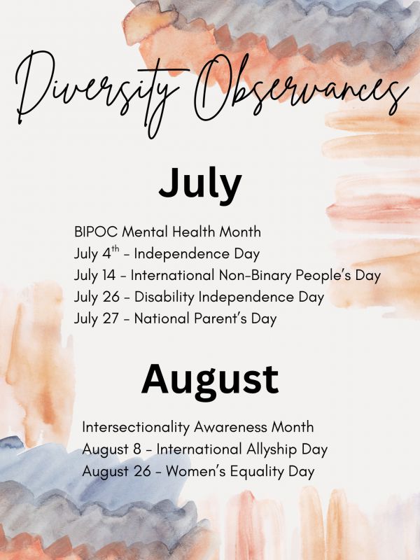 Board Spotlight: Diversity Diversity Observances in July and August July is BIPOC Mental Health Month